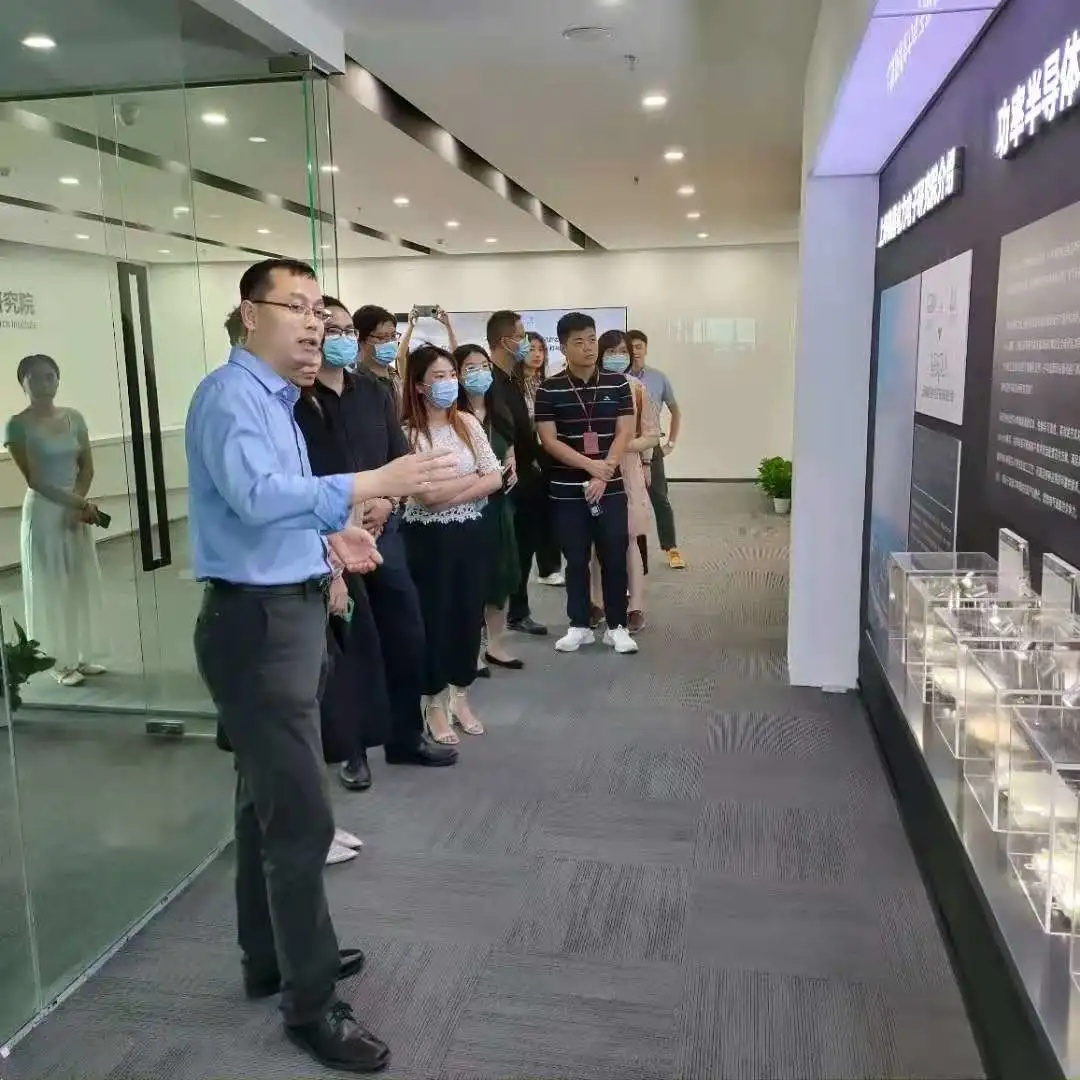 走訪中,沈捷博士首先向孫筱和副處長一行介紹了研究院平臺的發展情況,研究院平臺長期深耕功率半導體器件的封裝測試及應用、新能源汽車動力總成以及大容量變頻驅動等電力電子高科技重點領域,具有豐富的研發和產業化經驗。同時平臺與國內外多家頂尖車企在各領域開展了深入合作。在參觀的過程中,大家就平臺研究院平臺各科研項目的技術創新、前沿領域應用等方面進行了深入的探討和交流。