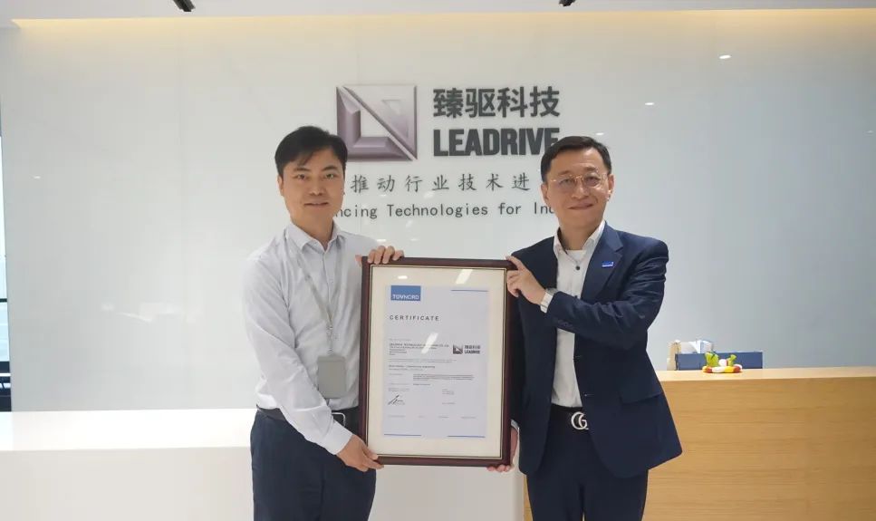現場,臻驅科技副總經理沈皓舜,臻驅科技首席工程師余浩,基礎軟件部研發經理孫利干,TÜV NORD大中華區副總裁宋海寧及TÜV NORD中國區銷售總監謝堯等雙方代表出席授證儀式。