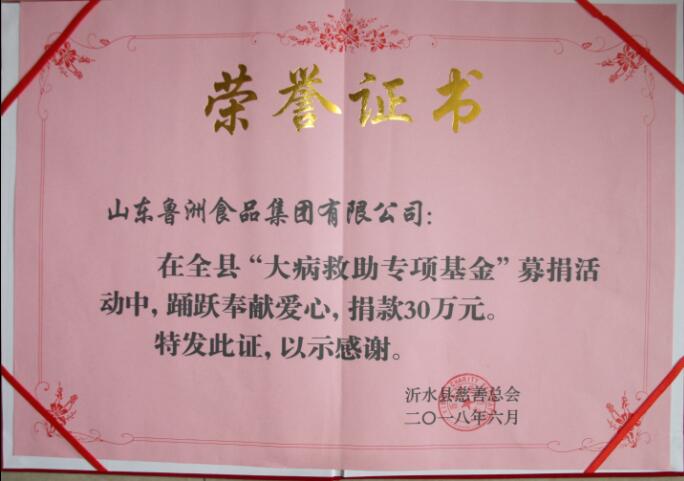 魯洲集團參加了此次捐款活動,捐款30萬元,助力我縣精準扶貧,為更多因病致貧、因病返貧及因病不能脫貧的家庭奉獻愛心。