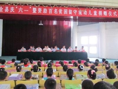 為幫助農(nóng)村貧困留守流動(dòng)兒童繼續(xù)學(xué)業(yè),努力營(yíng)造關(guān)愛(ài)貧困兒童健康發(fā)展的良好環(huán)境,2011年5月31日,沂水縣婦聯(lián)在第三實(shí)驗(yàn)小學(xué)舉行了全縣慶“六一”暨資助百名貧困留守流動(dòng)兒童捐贈(zèng)儀式, 儀式現(xiàn)場(chǎng)向30名留守流動(dòng)兒童代表各發(fā)放500元資助金、書(shū)包及食品。這次活動(dòng)全縣有170余名貧困留守流動(dòng)兒童接受愛(ài)心人士資助,資助金額達(dá)10萬(wàn)余元。魯洲集團(tuán)一次就結(jié)對(duì)資助了102名貧困留守流動(dòng)兒童。